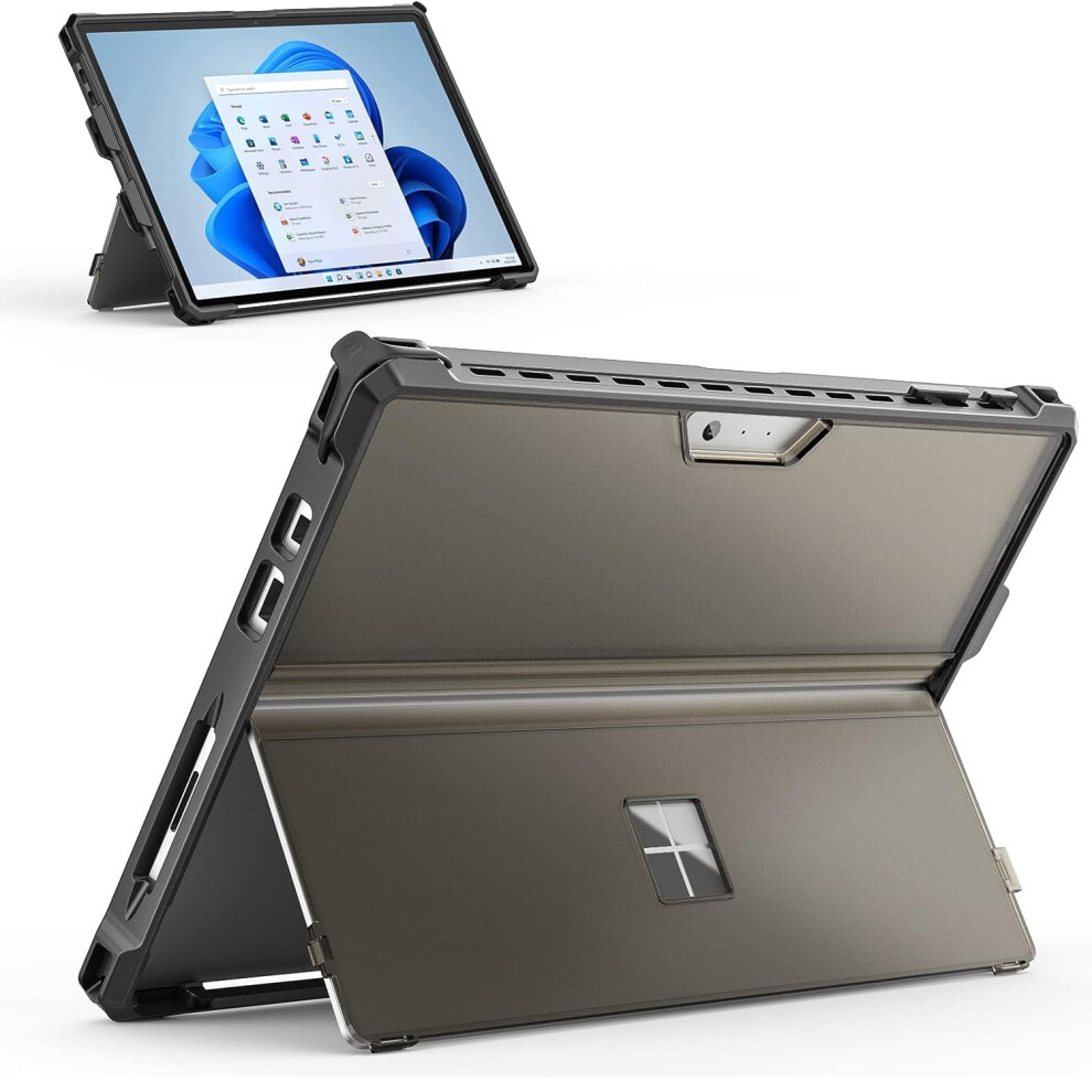 MoKo Case Fits Microsoft Surface Pro 8 13" Touchscreen 2021 Release Tablet, All-In-One Protective Rugged Cover Case with Hand Strap, Compatible with Type Cover Keyboard, Dark Gray