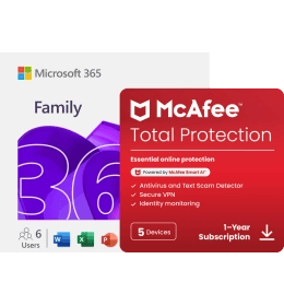 Microsoft 365 Family + McAfee Total Protection for 5 Devices 1 year