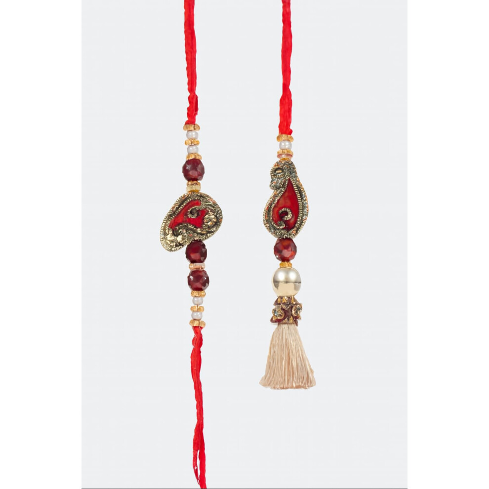 STORE INDYA Premium Rakhi with Greeting Card and Roli-Chawal Gift Pack for Brother Bhai | Raksha Bandhan Traditional Rakhi Bracelet for Men Rak