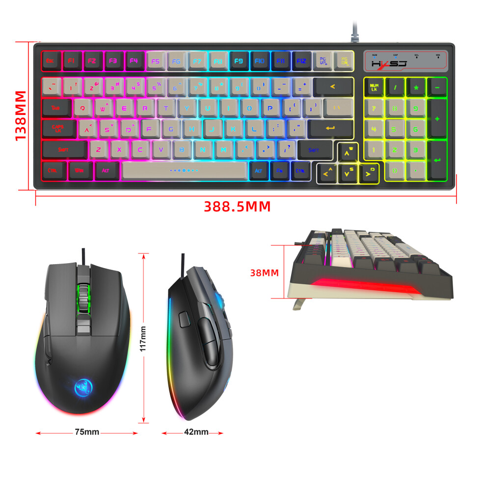 HXSJ V600+A905 Wired Keyboard Mouse Combo Ergonomic Macro