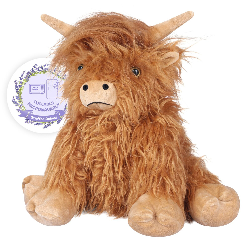 SuzziPals Heatable & Coolable Highland Cow Stuffed Animals Plushie, Microwavable Heating Pad for Soothing & Relaxation, Lavender Scented Cattle Plush Toys for Stress Relief, Stuffed Cow Gifts