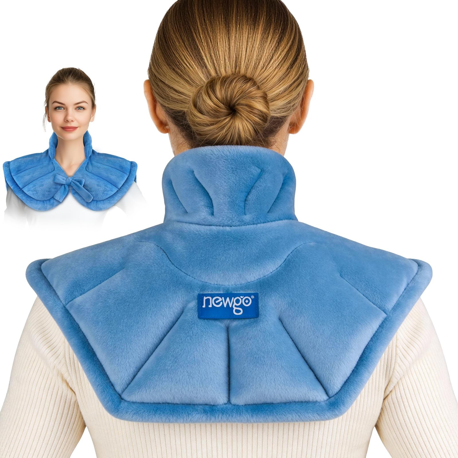 NEWGO Microwavable Heated Neck Wrap, Large Heating Pad for Neck, Blue