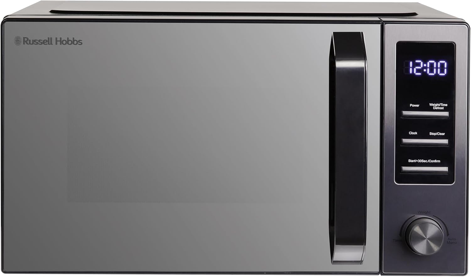 Russell Hobbs Digital Microwave 23 Litre 900W Dark Steel with 8 Auto Cook Menus & Defrost Function, 5 Power Levels, Integrated Timer, Mirror Door &