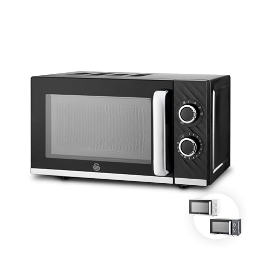 Swan Windsor Manual Microwave, 20L, 800W, 5 Power Levels, Defrost by Time, 30 Minute Timer, Non-slip Feet, Family Sized Microwave, Black, SM4424BLK