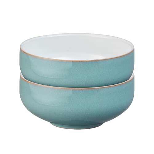 Denby - Azure Blue Cereal Bowls Set of 2 - Dishwasher Microwave Safe Crockery 800ml 15.5cm - Sea Blue, White Ceramic Stoneware Tableware - Chip & Crack Resistant Soup Bowls