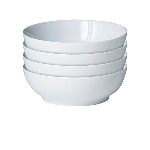Denby White Porcelain Cereal Bowls Set of 4 - Dishwasher Microwave Safe Crockery 800ml - Glazed Chip & Crack Resistant Soup Bowls