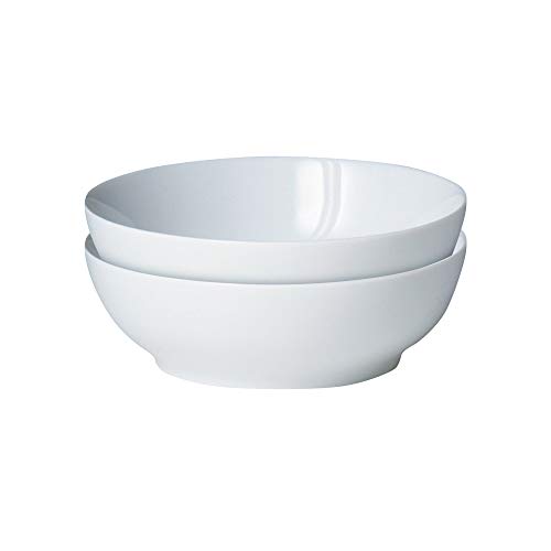 Denby White Porcelain Cereal Bowls Set of 2 - Dishwasher Microwave Safe Crockery 800ml - Glazed Chip & Crack Resistant Soup Bowls