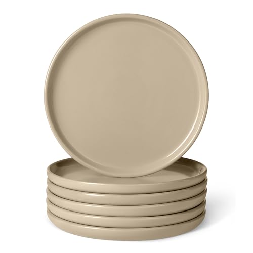 Amazon Basics Glazed Stoneware Salad Plates, 6-Piece Set, Microwave and Dishwasher-Safe, 21.08cm, Linen Gray