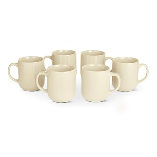 Amazon Basics Glazed Stoneware Coffee Mugs, 6-Piece Set, 473ml, Microwave and Dishwasher-Safe, Ivory