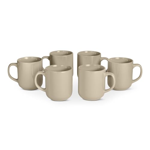 Amazon Basics Glazed Stoneware Coffee Mugs, 6-Piece Set, 473ml, Microwave and Dishwasher-Safe, Linen Gray