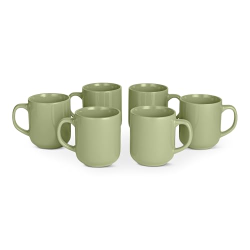 Amazon Basics Glazed Stoneware Coffee Mugs, 6-Piece Set, 473ml, Microwave and Dishwasher-Safe, Olive
