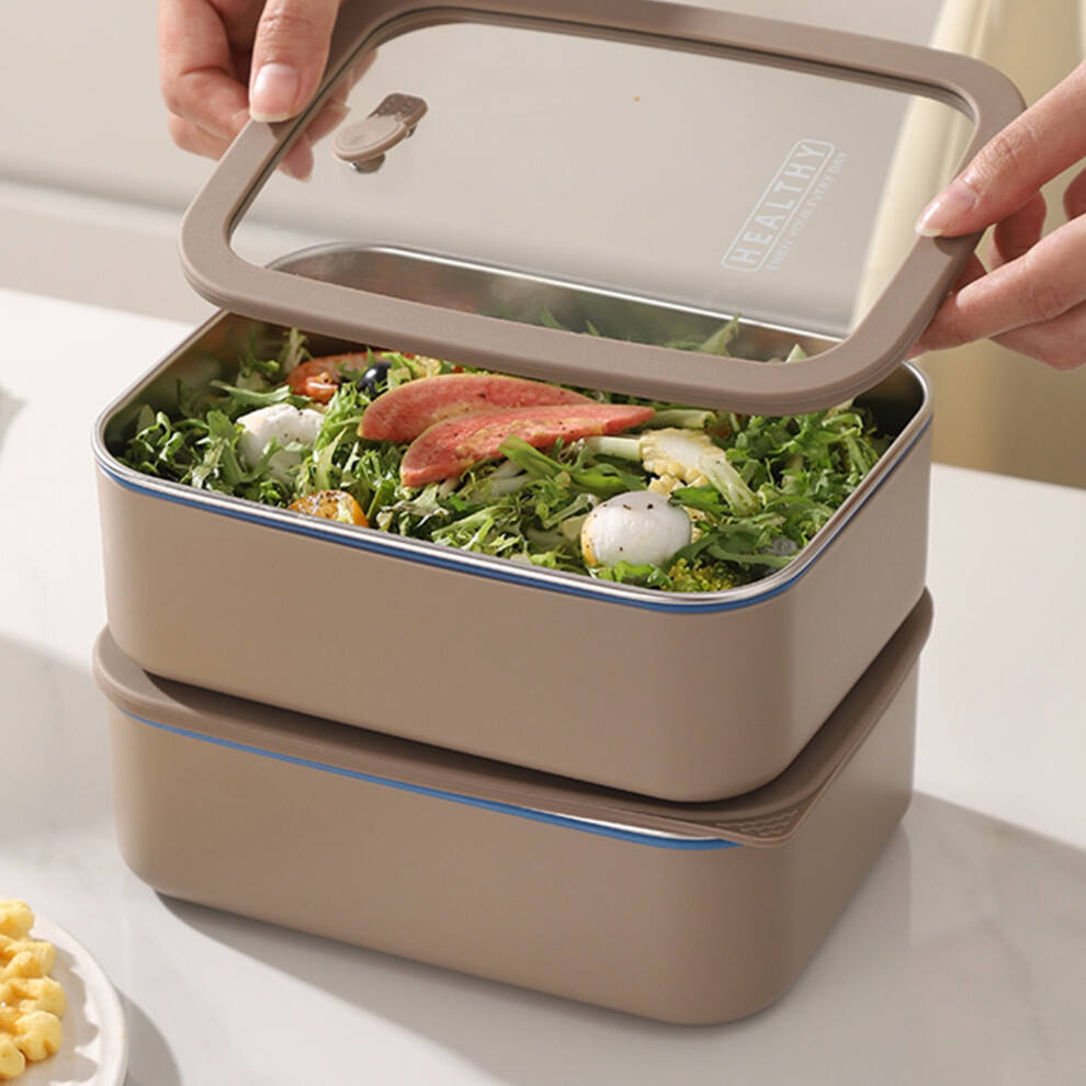 Clearance Sale! Giyblacko Portable Lunch Box, Leakproof Salad Container with Spoon & Chopsticks, Microwave, Freezer, Dishwasher Safe, Rectangle Wheat