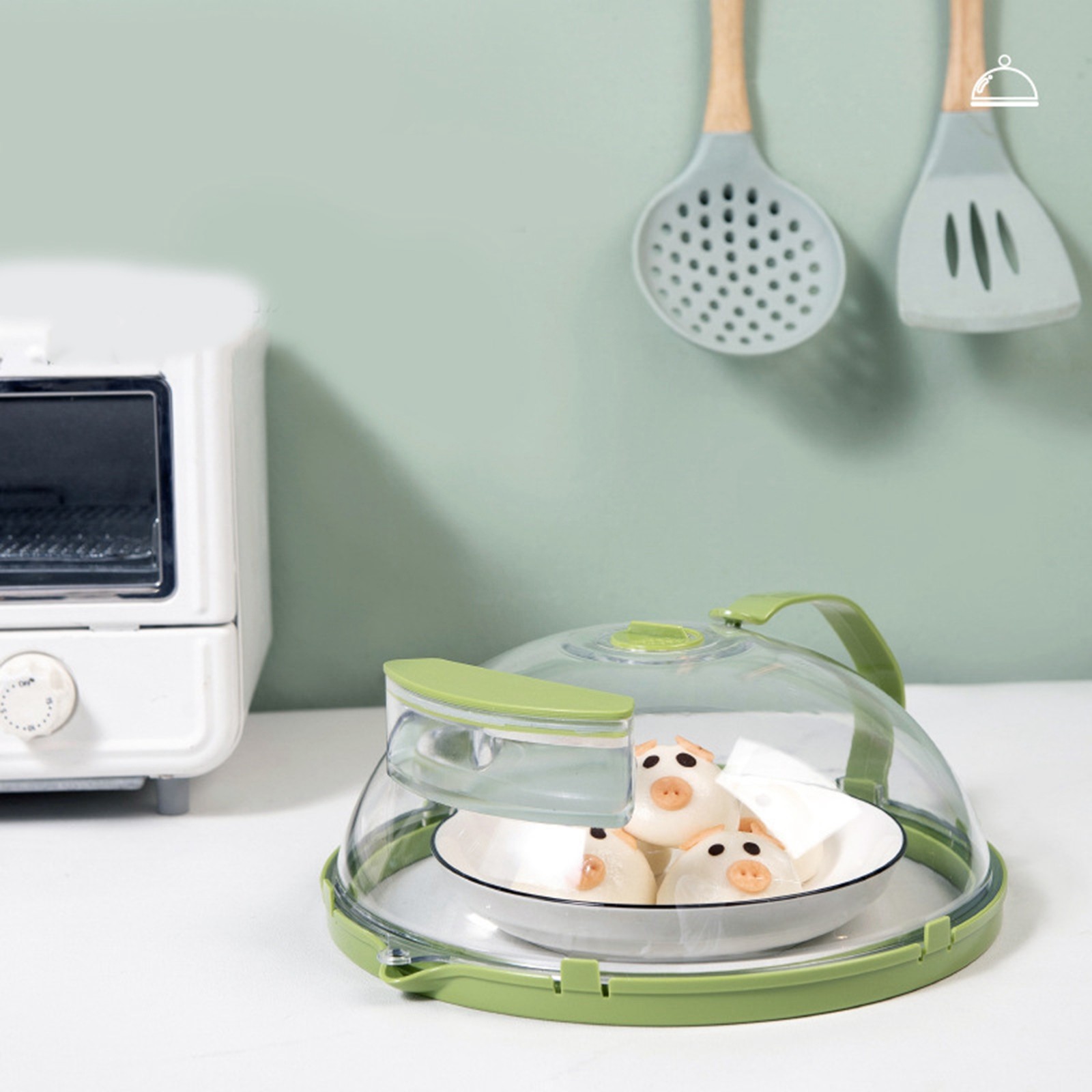 Kitchen Microwave Plate Cover Microwave Lid Stackable Food Cover Green