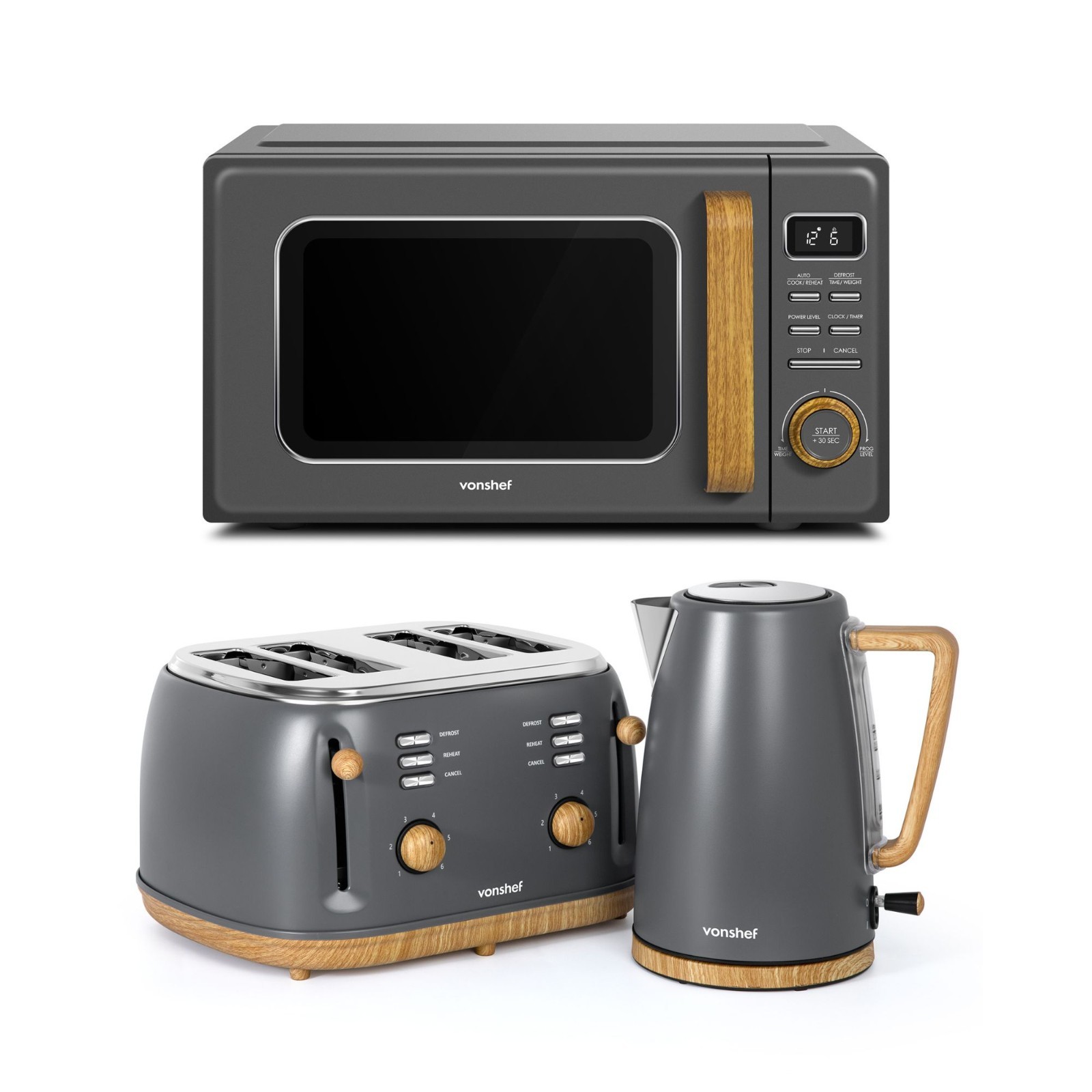 VonShef Digital 23L Microwave, 1.7L Kettle & Toaster 4 Slice Kicthen Set - Fika