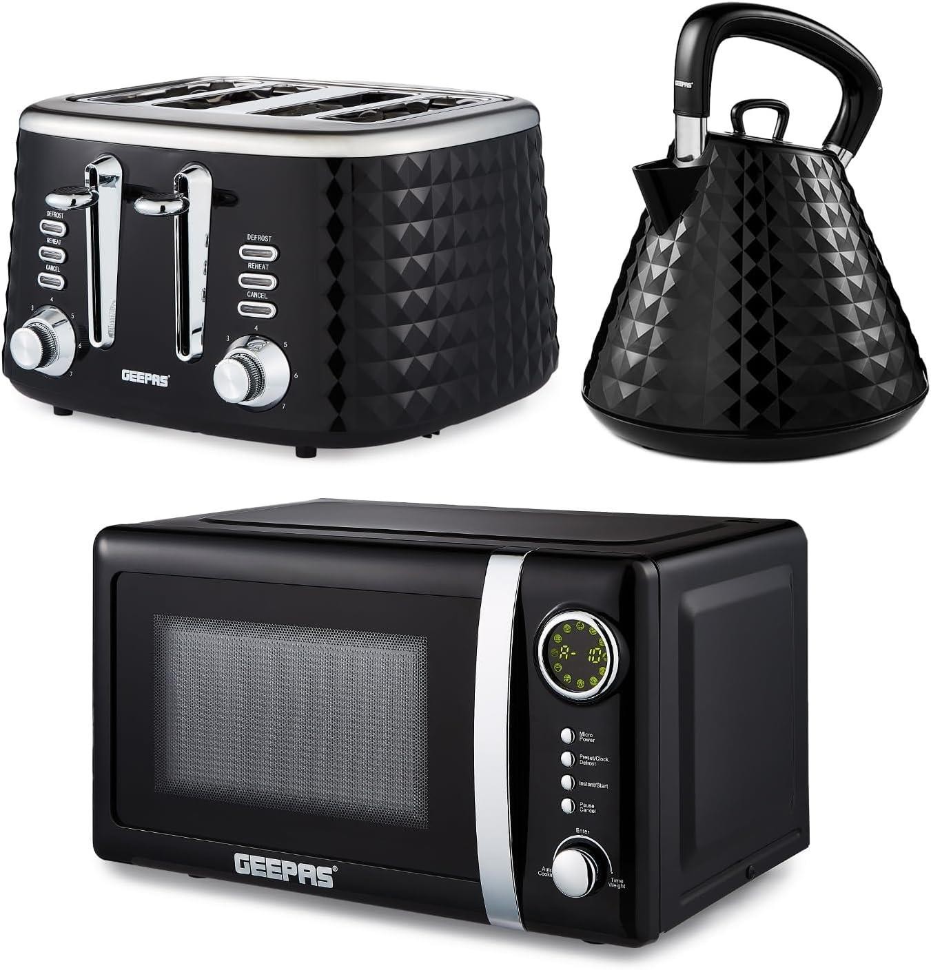 GEEPAS Argyle Collection Digital 20L Microwave 1.7L Kettle & 4 Slice Toaster Set