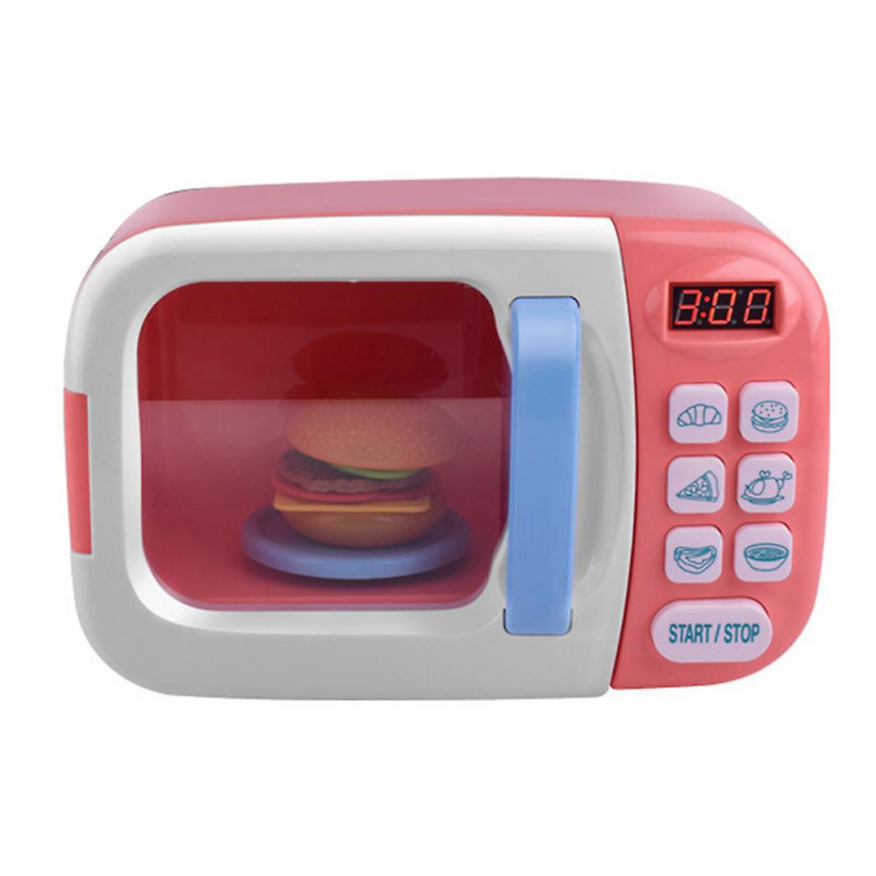 Kids Electric Microwave Oven Toy Set Pink, Cool Music, ABS Simulation
