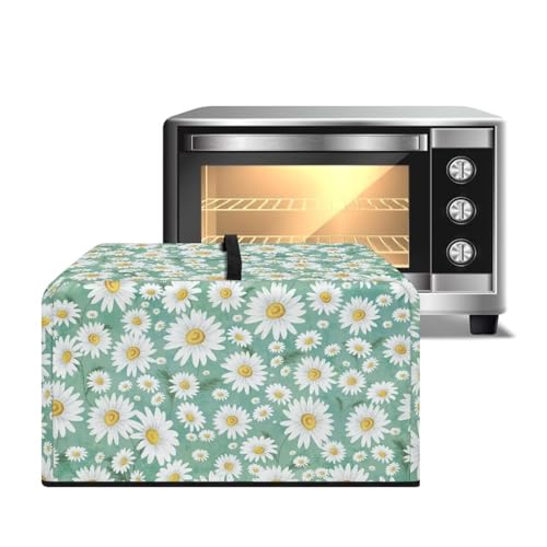 ZIATUBLES Green Daisy Flower Print Microwave Oven Dust Cover with Handle Heat Resistant Protector Cover for Air Fryer Toaster Oven Canvas Fabric Dustproof Covers, L