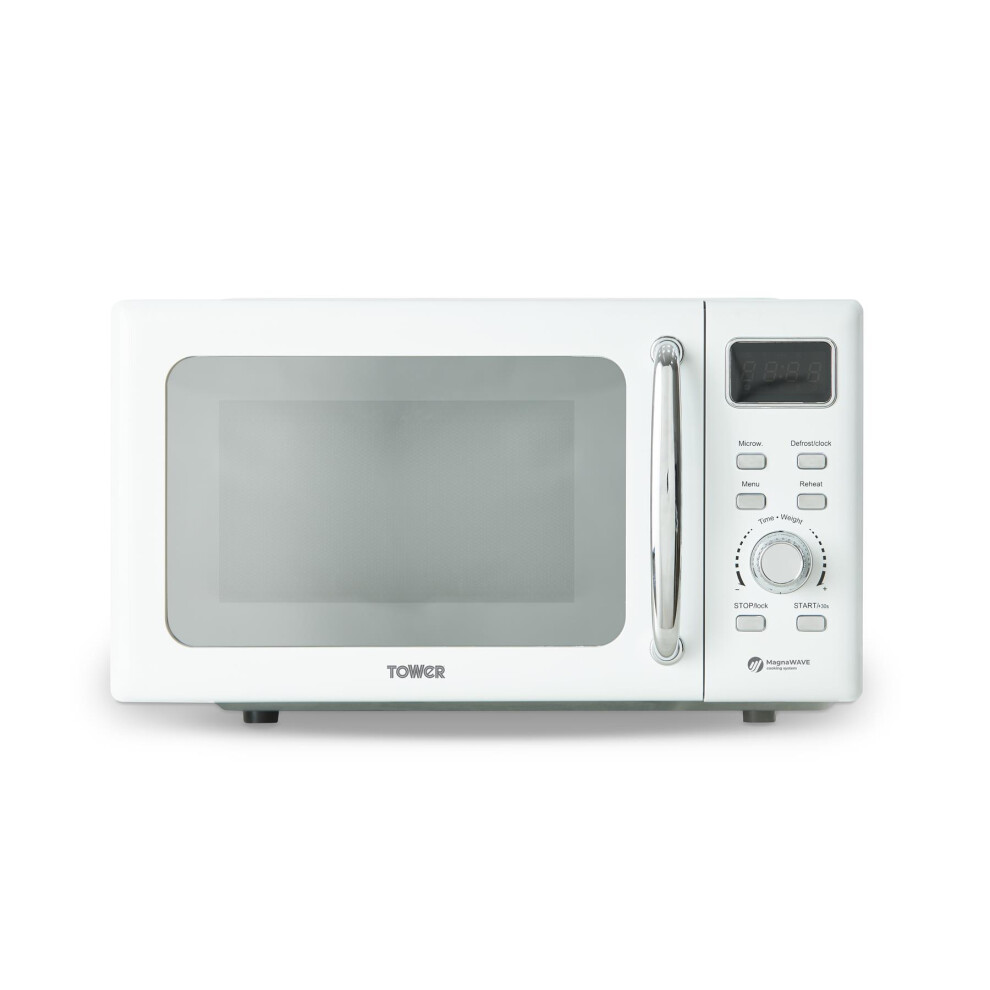 Tower T24041WHT Digital Microwave with Sleek Mirror Door, 800W, 20L, White & Chr