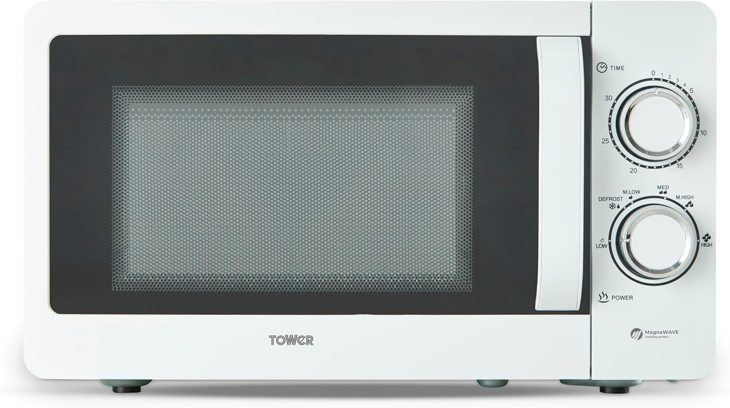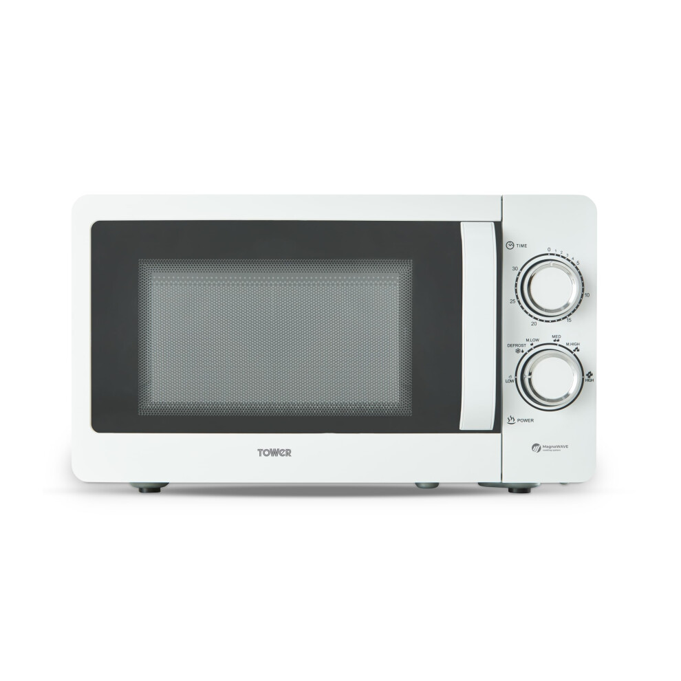 Tower Manual 20 Litre 800W Microwave with Dial Controls, 5 Power Levels, Defrost Function, 30 Minute Timer, White, T24044WHT