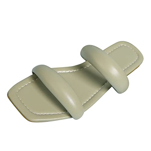 IUYTYSER Women Fashion Slip On Slide Sandals Ladies Summer Solid Leather Square Toe Flat Beach Slippers Warming For Microwave (Green, 5.5) Womens Sliders Size 6 Shower 5 Pool Pink Uk 4 Slider 7