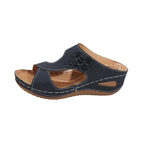 Uwdiohq Women's Slope Heel Beach Slippers Fish Mouth Cool Hollow Out Flower Casual Microwave for Women (Blue, 4) Sandals Size 7 Womens Soft 4 UK Ladies Sandels Wedge Sandal Brown Comfort Mule