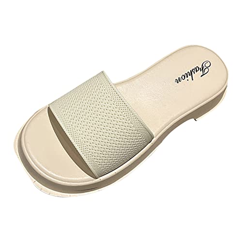 Uwdiohq Women's Slippers Summer Mesh Sequins Foreign Trade Open Toe Heel Casual Microwave for Women (White, 4-4) Womens Sliders Ladies Sandals Size 5 UK Comfortable 8 & Slides Comfort Wedge 6