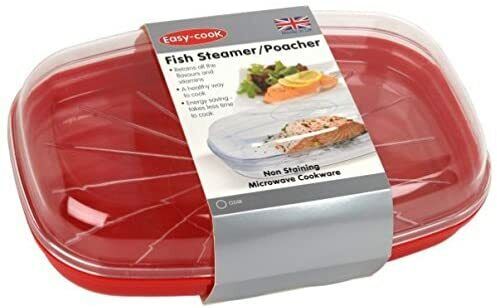 NEW Easy Cook NS626 Microwave Fish Streamer Poacher Red Base Clear Lid 270mm UK