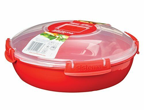 Microwave Round Food Container Cookware Bowl 1.3 L Food Steamer Red Clear Uk