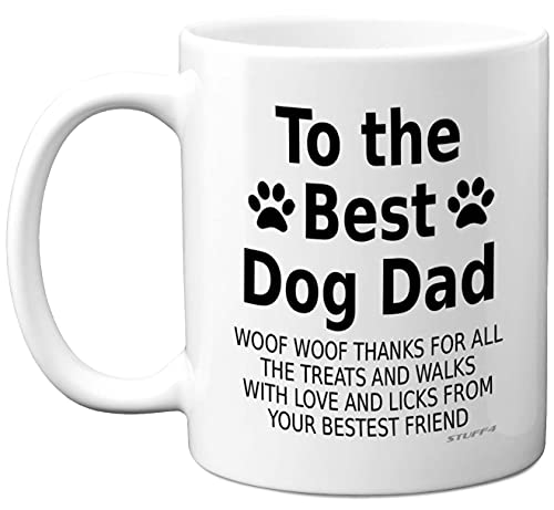 Stuff4 Best Dog Dad Gifts - Fathers Day Gift from Dog Mug, Funny Coffee Mug Cup, Woof Thanks, Gifts for Men, Christmas, Birthday Present, 11oz Ceramic Dishwasher Microwave Safe Tea - Made in UK