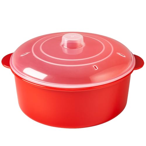 UK Microwave Round Food Container Cookware Bowl 1.3 L Food Steamer Red Clear Uk