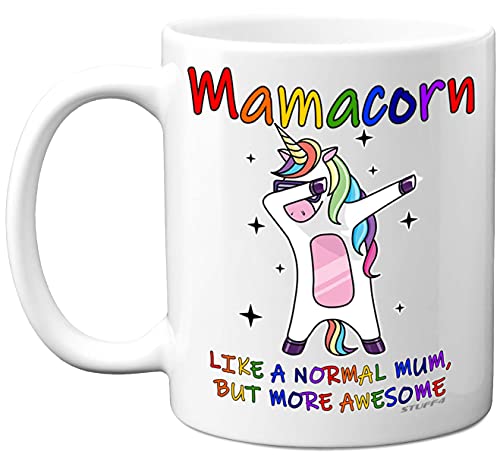 Stuff4 Mum Birthday Gifts - Mamacorn - Best Mum Mugs, Happy Birthday Gift, Mama Present Xmas Cup Cups, Christmas Tea Coffee Mothers Day Mugs, 11oz Ceramic Dishwasher Microwave Safe Mugs - Made in UK