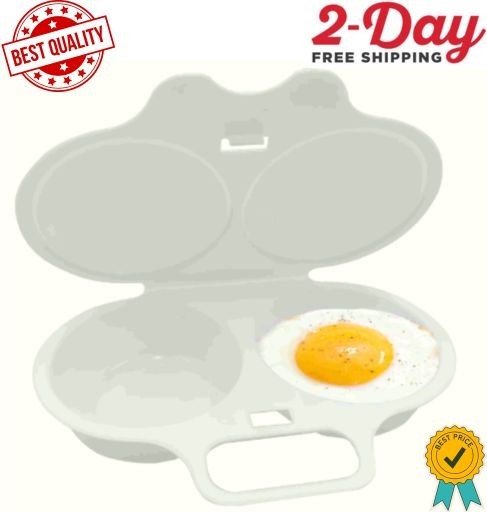 Microwave Egg Poacher Cup for 2 Eggs White Breakfast Cooker with Lid Home UK