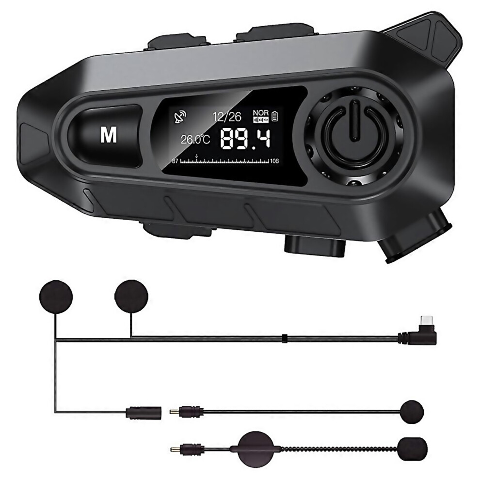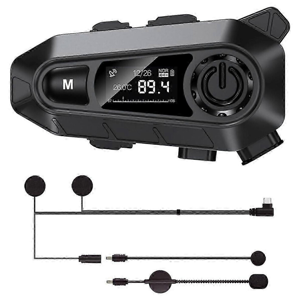 Suitable for Motorcycle Helmet Bluetooth Headset with 2 Mics, Intercom, Hands-Free, Music, Waterproof,