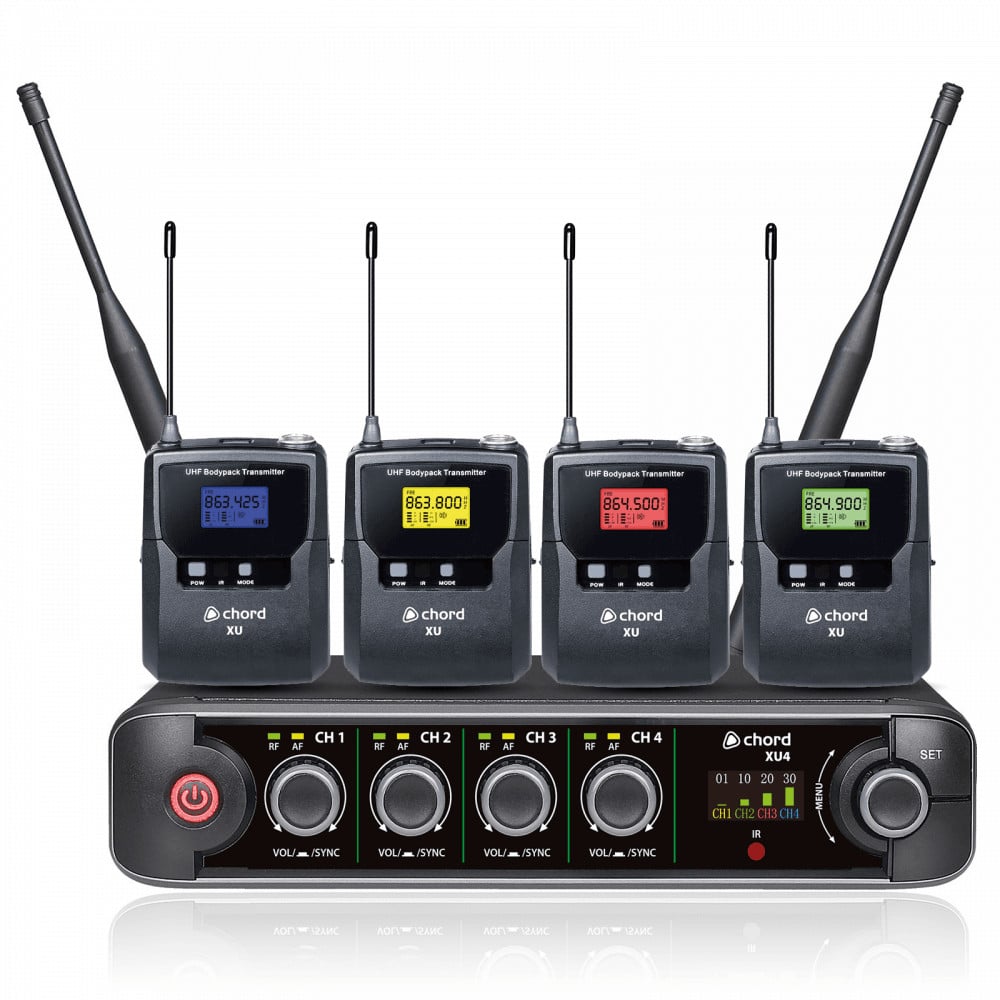 Chord XU-2BP Wireless Microphone System – Dual UHF Receiver with 2 Bodypacks, Lavalier & Headset Mics – Ideal for Presenters & Fitness Instructors