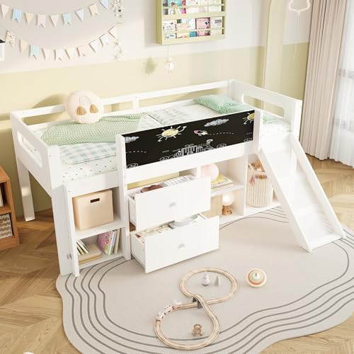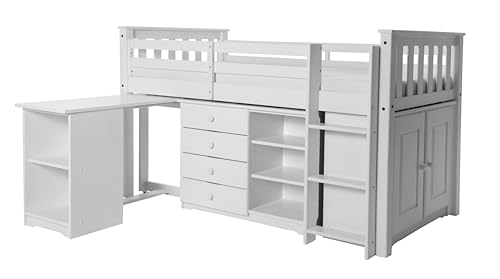 Noa and Nani Mid Sleeper Bunk Bed WHITE Pine Cabin bed with Slide + BLUE Design + Tunnel 6970WG-BLUE
