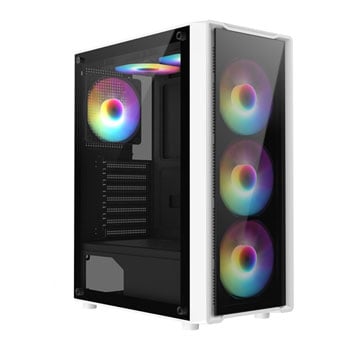 GameMax N80 White Mid Tower Tempered Glass PC Gaming Case with 6x ARGB