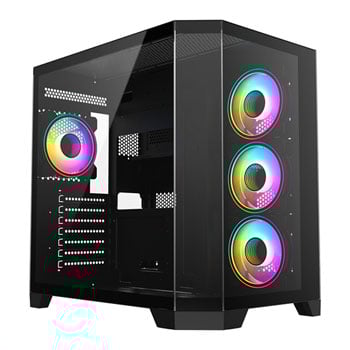CiT DS360 Black Mid Tower Tempered Glass PC Gaming Case with 4x Celsiu