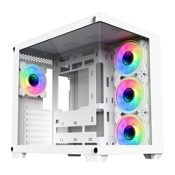 CiT DS360 White Mid Tower Tempered Glass PC Gaming Case with 4x Celsiu