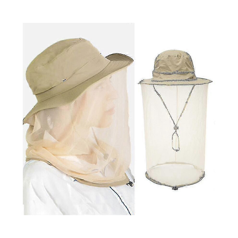 (Light Khaki) Mosquito Midge Head Net Hat Mesh Face Protection Cover Insect Bee,women Men,outdoor Jungle Fishing