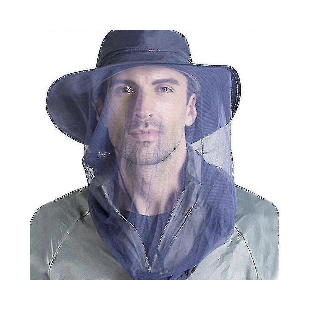 (Dark Blue) Mosquito Midge Head Net Hat Mesh Face Protection Cover Insect Bee,women Men,outdoor Jungle Fishing