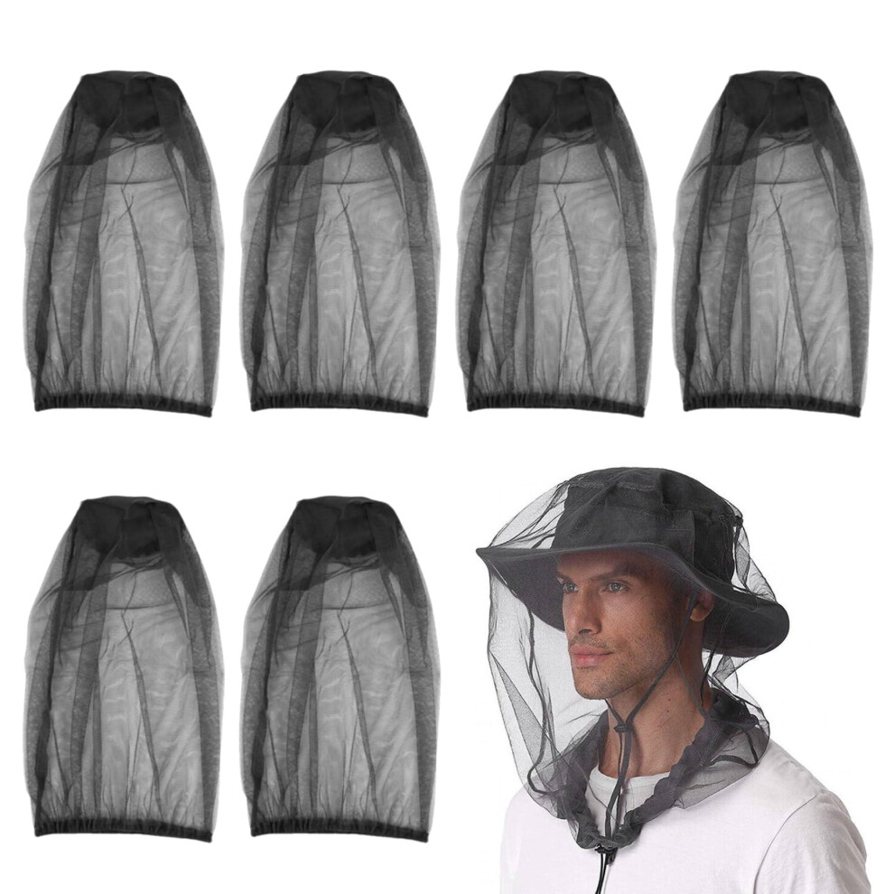 Mosquito Head Net 6 Pieces Black Midge Net for Hiking Camping Fishing