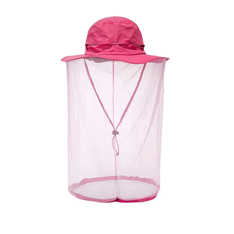 Midge Net Head Cover Unisex Head Net Mosquito Hat Bucket Sun Hat For Camping Fishing Face Neck Protection Rose Red