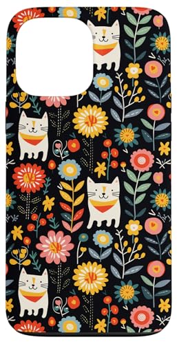 Folk Cat Art Floral Midnight Boho Black Pattern Case for iPhone 13 Pro Max