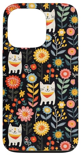 Folk Cat Art Floral Midnight Boho Black Pattern Case for iPhone 13 Pro