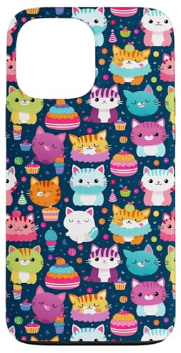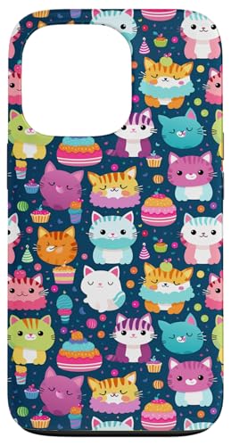 Kawaii Party Cat Cupcake Midnight Navy Festive Pattern Case for iPhone 13 Pro