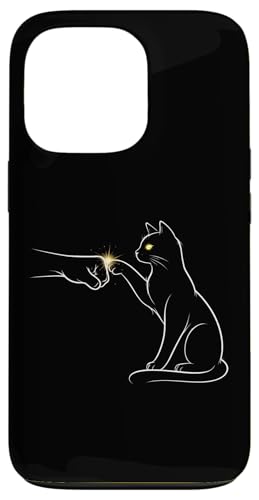 Midnight Cat Touch Magical Bond Line Art Cat Silhouette Case for iPhone 13 Pro
