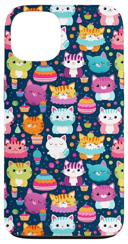 Kawaii Party Cat Cupcake Midnight Navy Festive Pattern Case for iPhone 13 Pro Max