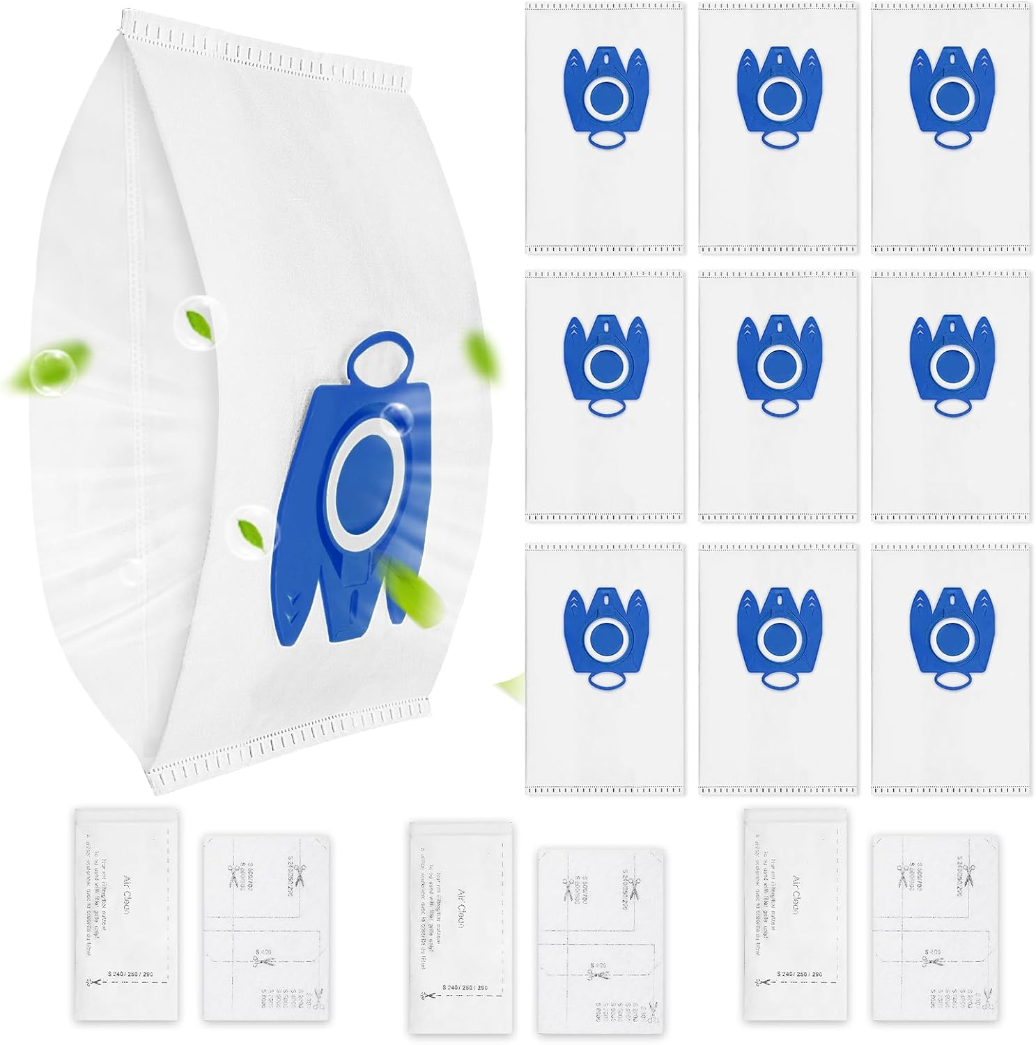 Compatible Efficiency Vacuum Cleaner Bags Filters For Miele Hyclean GN Classic C1 Complete C2&C3 Cats And Dogs Dust Bags (10 Packs)(Color:Blue)