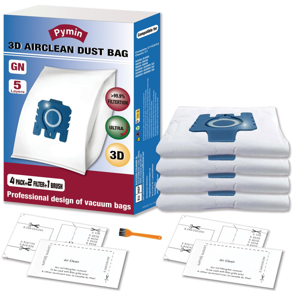 Pymin 4 Pack GN Vacuum Dust Bags Replacements Compatiable with Miele Classic C1, Complete C2 C3, Cat & Dog, S200-S8000 Series Vacuum Cleaner, Replaces