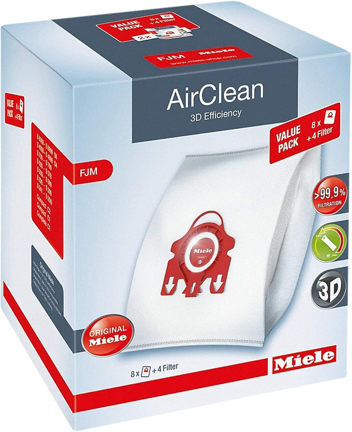 Miele Airclean 3D Efficiency Dust Bag, Type FJM, XL Value Pack, 8 Bags & 4 Filte